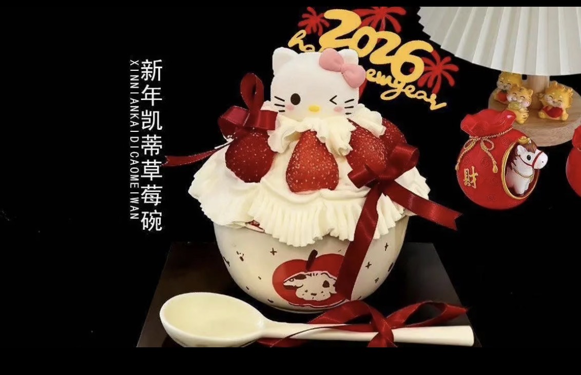 [动物奶油]4英寸草莓生日蛋糕: helloKitty草莓碗